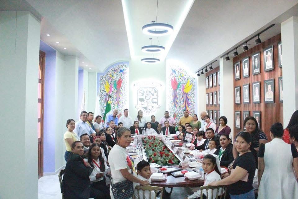 Estando presentes en este significativo evento, el Síndico Procurador, José Luis Rendón Castañón, las y los regidores de la comuna municipal, el Secretario General, Jorge Antonio Salgado Martínez, y el presidente del Sistema DIF, Jesús Álvarez Mendoza, y la tesorera municipal, Gabriela Bernal Deloya, quienes junto a la presidenta, otorgaron un reconocimiento a cada uno de los integrantes del Cabildo Infantil 2025.