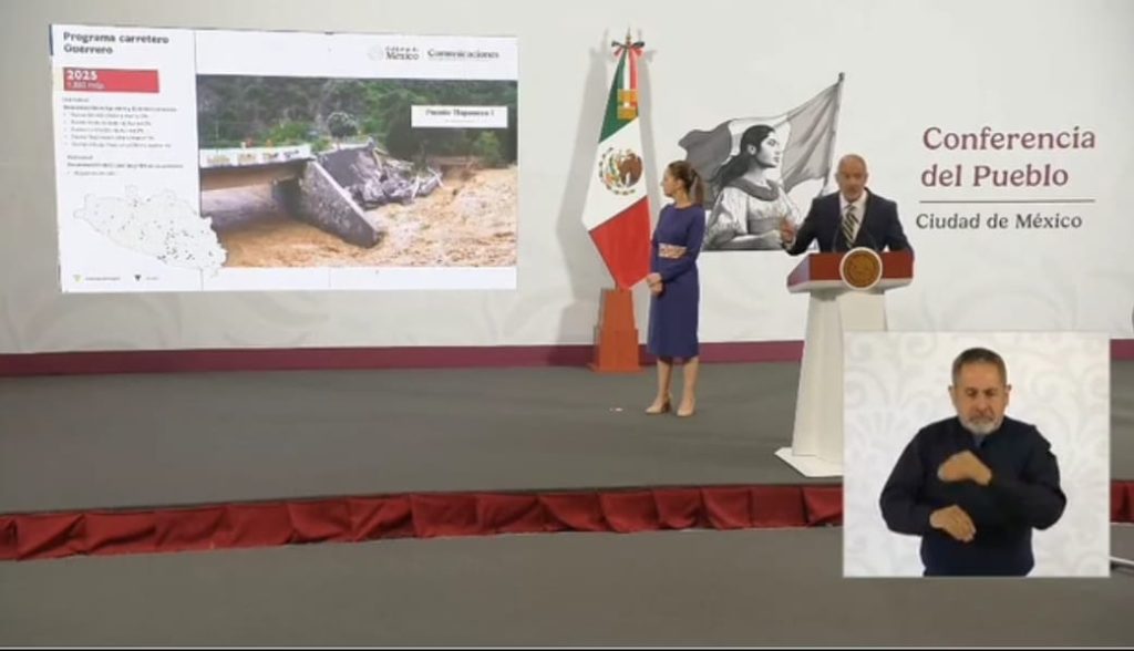 Ciudad de México. 08 de mayo del 2025. – Más de mil 880 millones de pesos serán invertidos en 2025, dentro del programa de reconstrucción de infraestructura carretera para Guerrero, informó el titular de la Secretaría de Infraestructura, Comunicaciones y Transportes (SICT), Jesús Antonio Esteva Medina al refrendar el compromiso de la presidenta Claudia Sheinbaum con el estado después de los daños que dejó el huracán John.