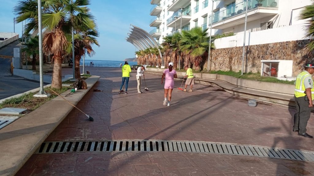 A primera hora de la mañana, el personal de la dependencia dirigida por Alfredo Lacunza de la Cruz, realizó labores de limpieza en toda la ventana ecológica del puerto, desde el punto conocido como “Las Hamacas” hasta Plaza Quebec.