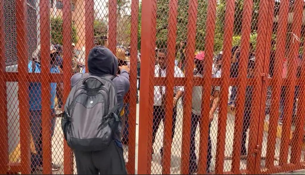 Minutos antes, el edificio fue evacuado y todos los accesos cerrados. Los docentes utilizaron un marro para derribar una reja del estacionamiento y así lograr el acceso.