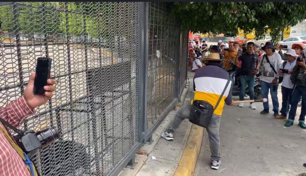 Una vez dentro, lograron retirar las cadenas del portón para permitir el ingreso de más compañeros. De inmediato se dirigieron hacia la puerta que da acceso al pleno; sin embargo, tras varios minutos golpeando candados y cadenas, desistieron de su intento.