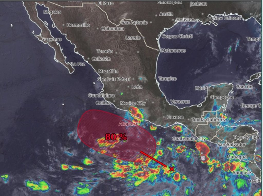 El SMN añadió que se prevé que evolucione a ciclón tropical durante este fin de semana frente a las costas de Guerrero y Michoacán.