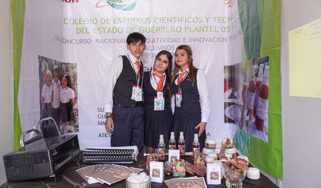 El proyecto, en el que participaron los alumnos de sexto semestre Susana, Simón y Sherlyn, junto con su asesora, Susana Quevedo García, lleva por nombre “Cuachalalate”, propuesta que consiste en una línea innovadora de productos desarrollados a partir de ingredientes naturales, como el cuachalalate y las escamas de pescado.