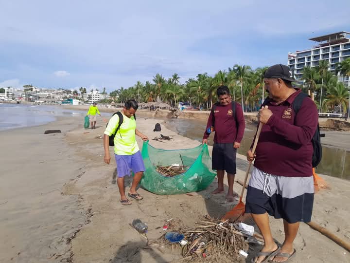 Por instrucciones de la gobernadora Evelyn Salgado Pineda, personal operativo de la Promotora de Playas, desplegó este lunes un operativo de limpieza en la franja de arena de la bahía de Acapulco, luego de las intensas lluvias registradas durante la madrugada.