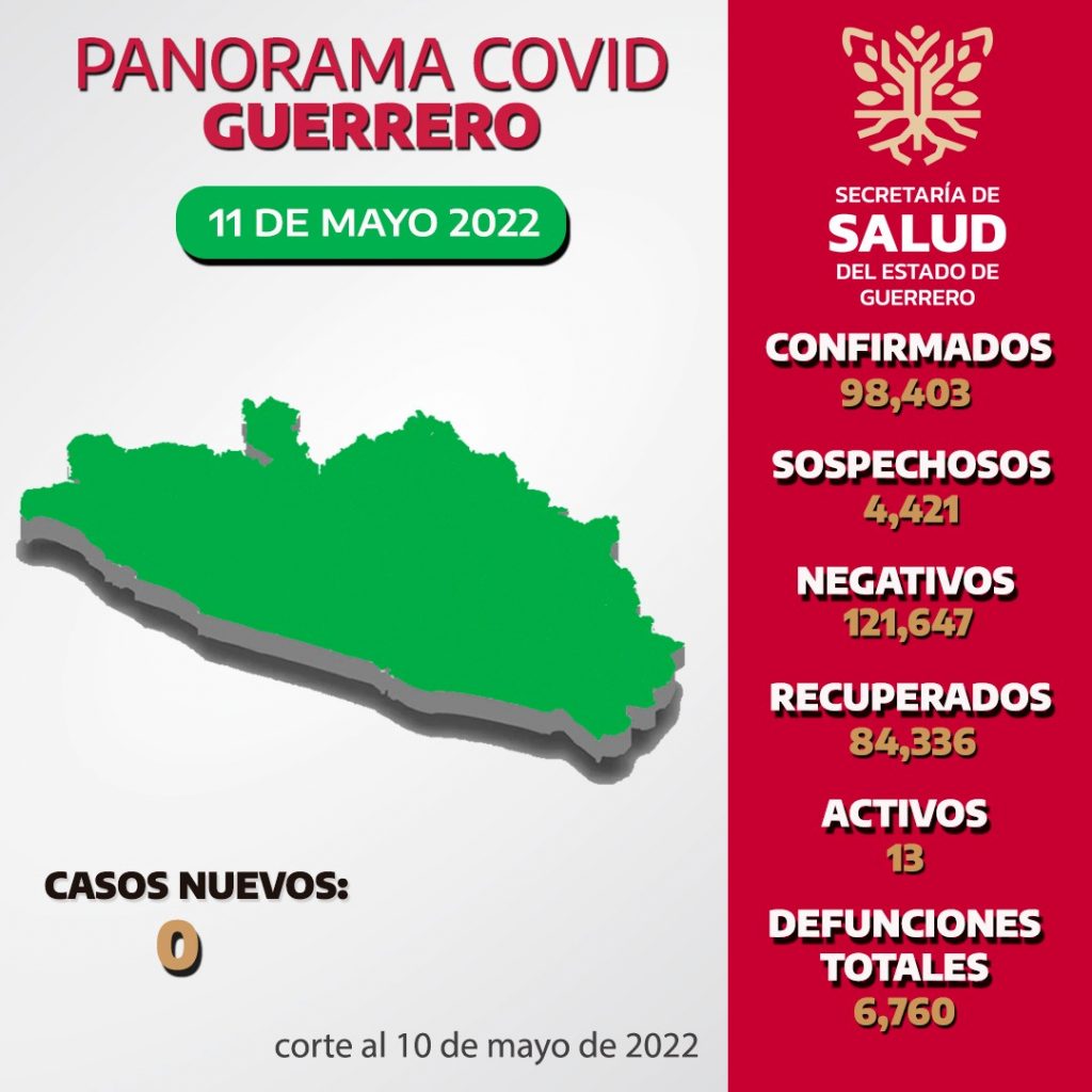 Por último, detalló que desde el inicio de la pandemia, en Guerrero se acumulan 98,403 casos confirmados de Covid-19, sin registro de nuevos contagios en las últimas 24 horas, manteniendo una mínima ocupación de camas Covid, con el 1 por ciento.