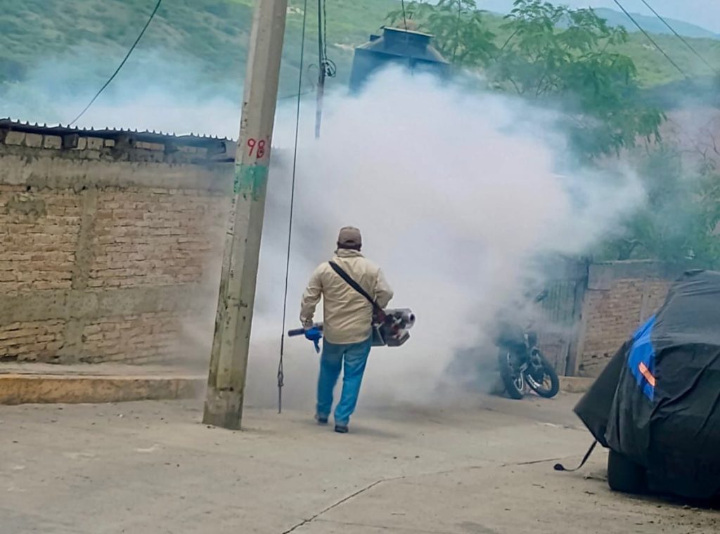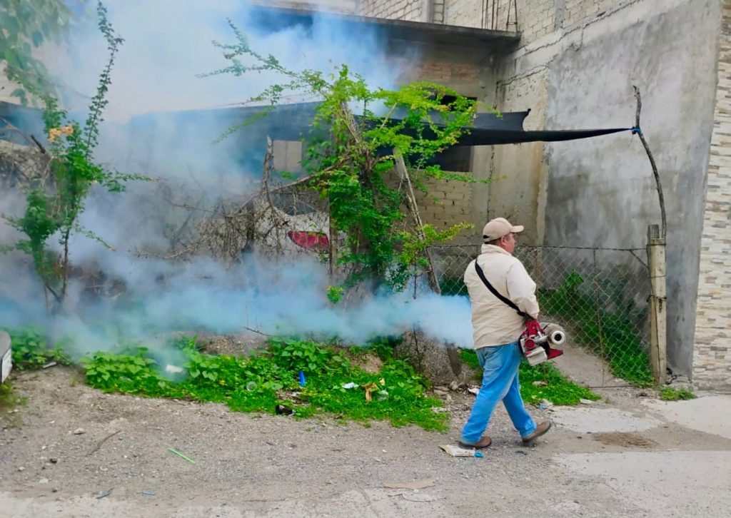 Zumpango del Río, Gro., 04 de julio de 2025. Como parte de los esfuerzos para prevenir enfermedades transmitidas por mosquitos, que lleva a cabo el Gobierno Municipal de Eduardo Neri, que preside la Q.B.P. Sara Salinas Bravo, personal de la Dirección de Protección Civil en coordinación con vectores de la Secretaría de Salud realizaron trabajos de fumigación espacial en las colonias Santa Cecilia, Santa María, Cazahuates, San Juan Diego y Rubén Figueroa, en la cabecera municipal.