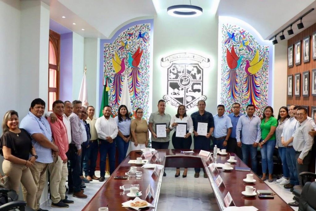 Presentes en la firma de este convenio estuvieron integrantes del cabildo y el gabinete municipal; supervisores escolares, y representantes de la empresa Minera Torex Gold Media Luna.