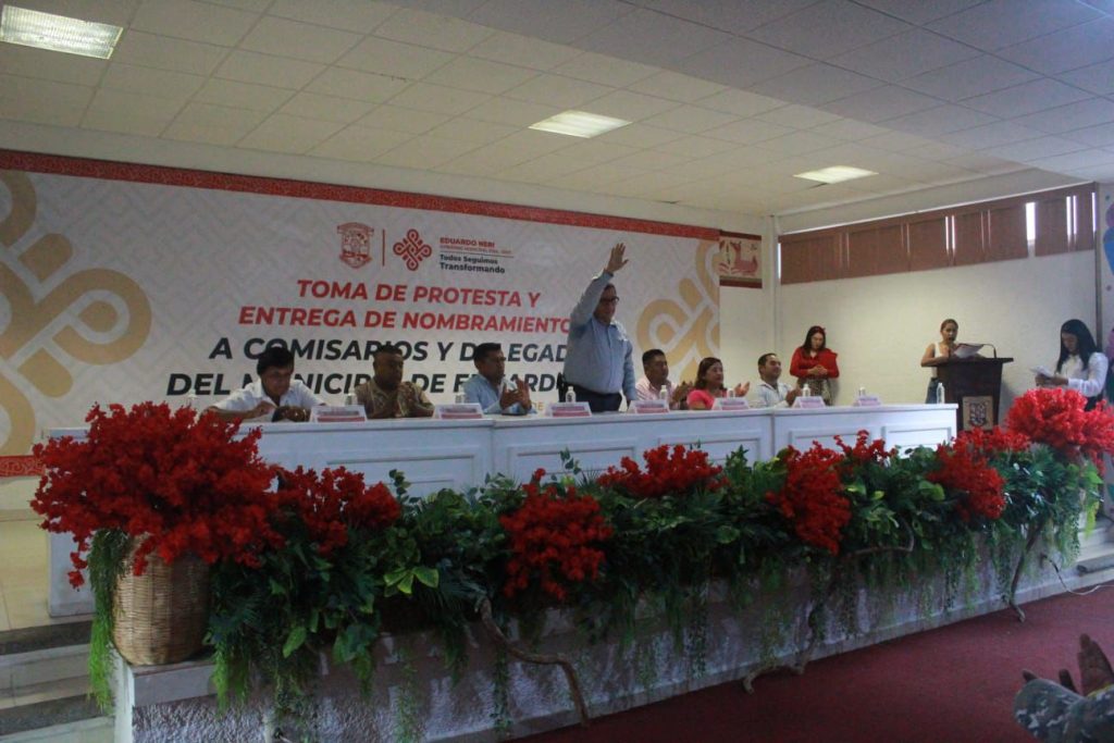 Zumpango del Río, Gro., 02 de agosto de 2025. Este viernes se llevó a cabo el acto oficial de Toma de Protesta y entrega de nombramientos a las y los comisarios y delegados electos para el periodo 2025-2026 del municipio de Eduardo Neri.