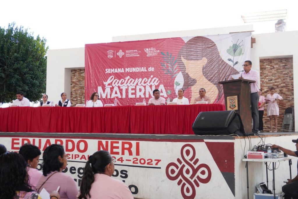 Zumpango del Río, Gro., 05 de agosto de 2025. Con el propósito de encaminar acciones que favorezcan el bienestar de las y los infantes, y fomentar la lactancia materna en Eduardo Neri, el Gobierno Municipal que preside la Q.B.P. Sara Salinas Bravo, a través de la Dirección General de Salud, y en coordinación con la Secretaría de Salud y la Jurisdicción Sanitaria 03 Centro, realizó un acto conmemorativo por la Semana Mundial de la Lactancia Materna, en la alameda central “Cnel. José María Bernal” de la cabecera municipal.