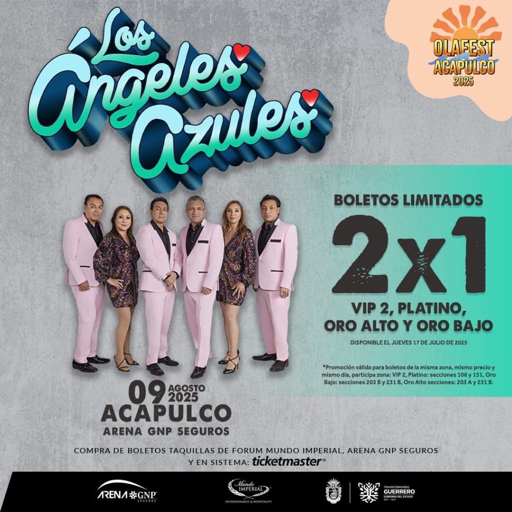 Acapulco, Gro., 08 de agosto de 2025.- El ritmo, la fiesta y la alegría del verano alcanzarán su punto más alto este sábado 9 de agosto, cuando Los Ángeles Azules lleguen a Acapulco para hacer vibrar la Arena GNP Seguros en el espectacular cierre del OLA Fest 2025, evento impulsado por la gobernadora Evelyn Salgado Pineda a través de la Secretaría de Turismo del Estado.