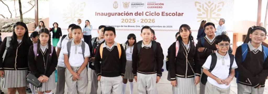 Chilpancingo, Gro., 02 de septiembre de 2025.- En representación de la gobernadora, Evelyn Salgado Pineda, el secretario de Educación en Guerrero, Ricardo Castillo Peña dio el banderazo de inicio al ciclo escolar 2025-2026, con el retorno de más de un millón 100 mil estudiantes de todos los niveles educativos.