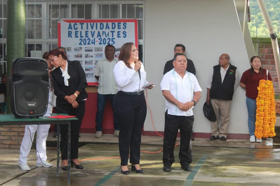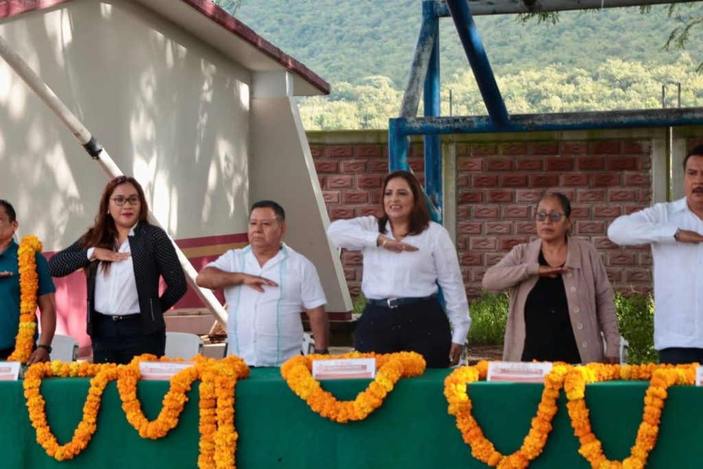 Huitziltepec, Gro., 02 de septiembre de 2025. La mañana de hoy, la presidenta municipal de Eduardo Neri, Q.B.P. Sara Salinas Bravo, participó como invitada especial en los honores a la bandera de la Telesecundaria “Emiliano Zapata” en la localidad de Huitziltepec, donde además fue la encargada de inaugurar el inicio del ciclo escolar 2025-2026.