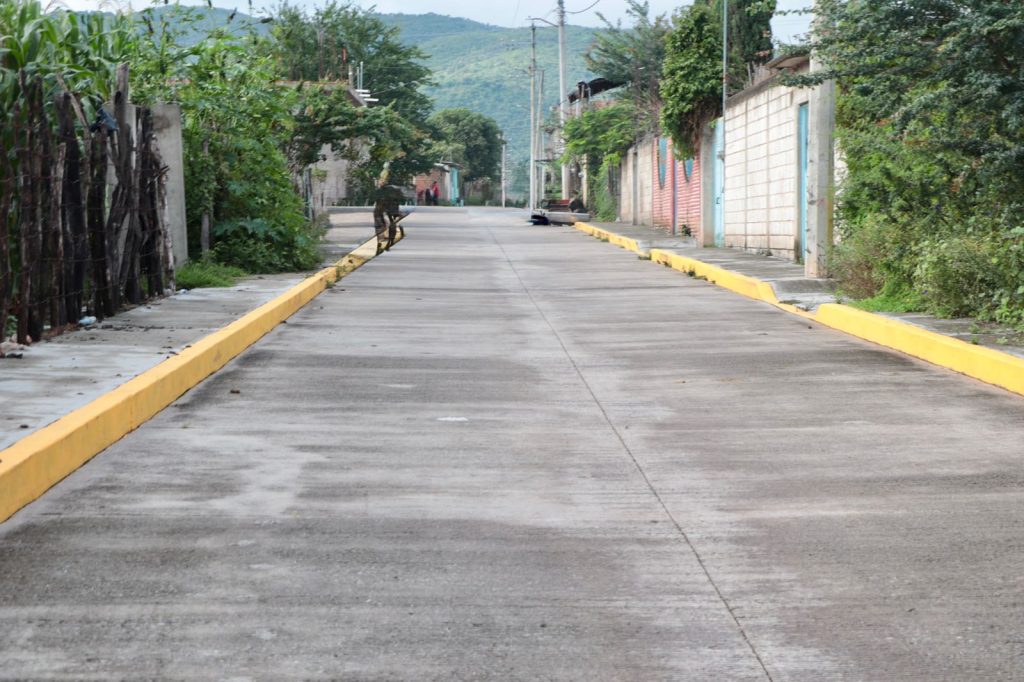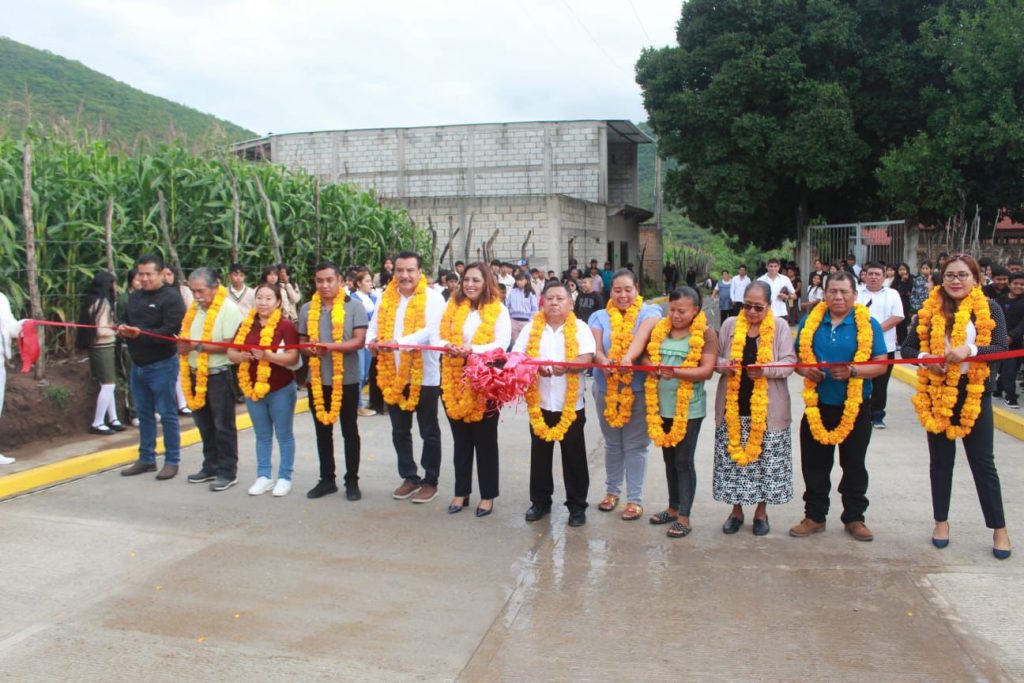*La presidenta, Sara Salinas Bravo, entrega la obra de pavimentación con concreto hidráulico de la calle José María Morelos y Pavón de la comunidad de Huitziltepec