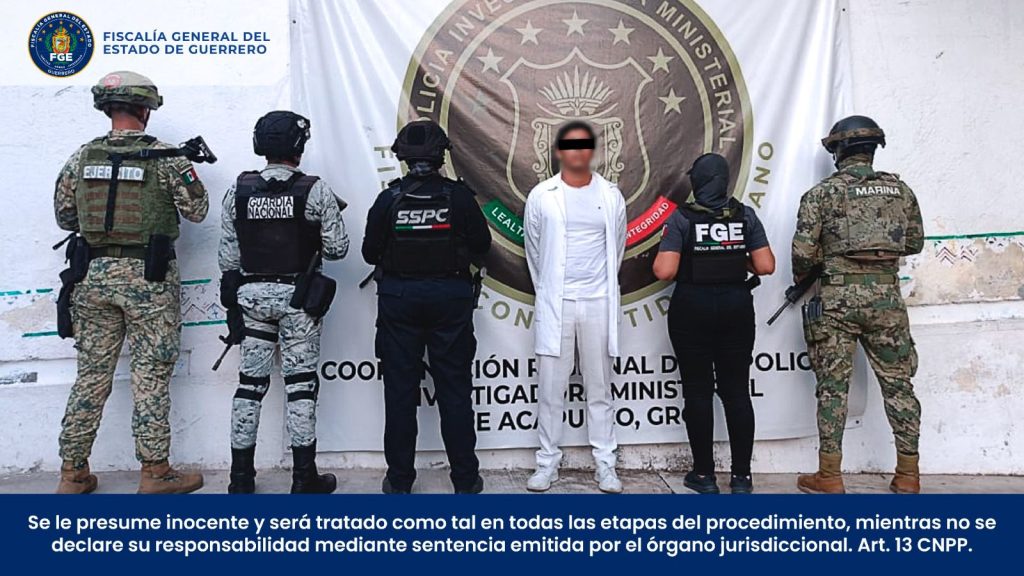 Chilpancingo, Gro., a 06 de septiembre de 2025.- La Fiscalía General del Estado de Guerrero, en coordinación con la Secretaría de la Defensa Nacional (DEFENSA), Guardia Nacional (GN), Secretaría de Marina (SEMAR) y la Secretaría de Seguridad y Protección Ciudadana (SSPC), cumplimentó una orden de aprehensión emitida en contra de Alan “N” por su probable participación en el delito de violacion equiparada con violencia y violación agravada, cometido en perjuicio de una víctima de identidad reservada, por los hechos ocurridos en Acapulco de Juárez.