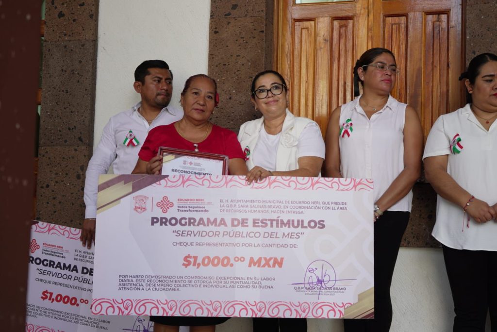 En el evento, el Prof. Francisco Javier Leyva Navarrete, Director de Recursos Humanos, hizo entrega del estímulo económico y reconocimiento como Servidor Público del Mes por su destacado desempeño durante el mes de agosto a los CC. Griselda Navarrete Atenco, Jonathan Misael Bello Isidro, Cirenia Salgado Apolinar y Luis Hernández Coctecon; otorgándole además un reconocimiento por su labor a la Dirección del Mercado, recibiendo su titular, Diana Alarcón Leyva.