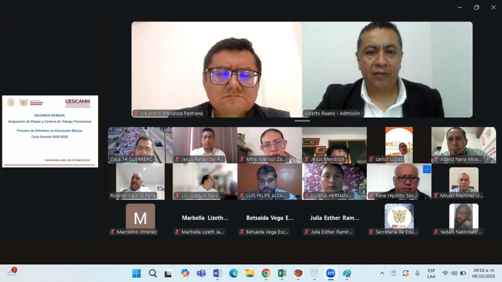 Chilpancingo, Gro., 10 de octubre de 2025.- El secretario de Educación en Guerrero, Ricardo Castillo Peña entregó de forma virtual la segunda remesa de asignación de 67 plazas de jornada y 75 horas docentes a maestros de los diferentes niveles de educación básica correspondiente al proceso de Admisión en Educación Básica del ciclo escolar 2025-2026.