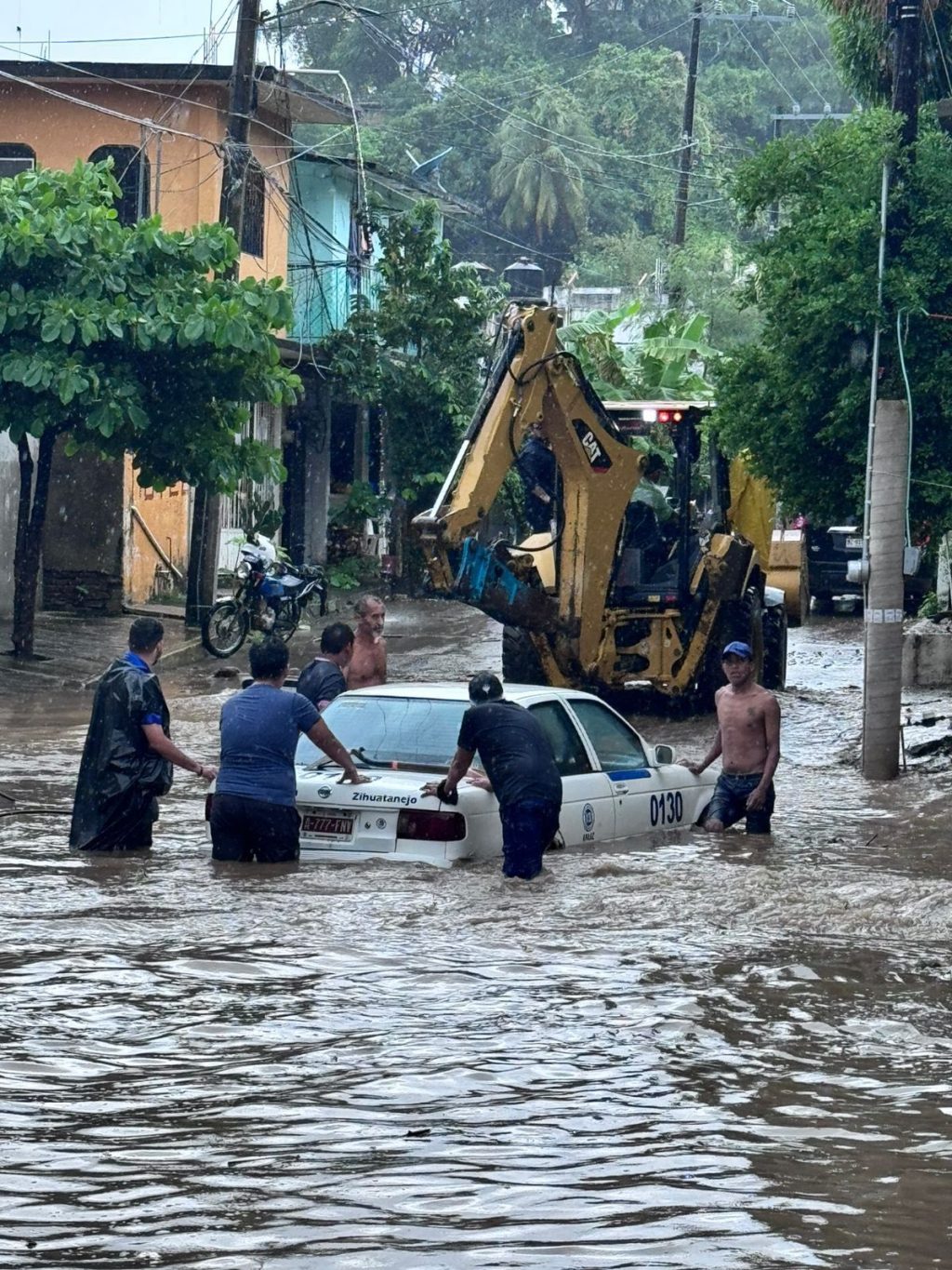 Inundaciones y vehículos varados deja “Raymond” en Zihuatanejo