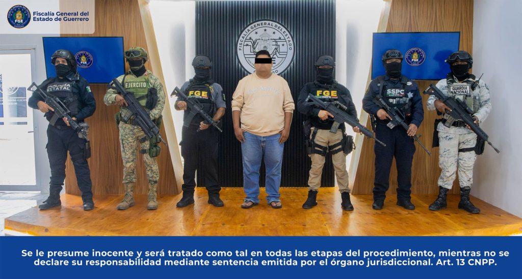 Chilpancingo, Gro., a 11 de octubre de 2025. – En seguimiento a las investigaciones realizadas por el homicidio de Bertoldo “N”, la Fiscalía General del Estado de Guerrero informa que elementos de la Policía Investigadora Ministerial, en coordinación con la Secretaría de la Defensa Nacional (DEFENSA), Guardia Nacional (GN), Secretaría de Seguridad y Protección Ciudadana (SSPC) y Policía Estatal (SSPGro), cumplimentaron una orden de aprehensión en contra de Miguel “N”, por su probable responsabilidad en el delito de homicidio calificado.