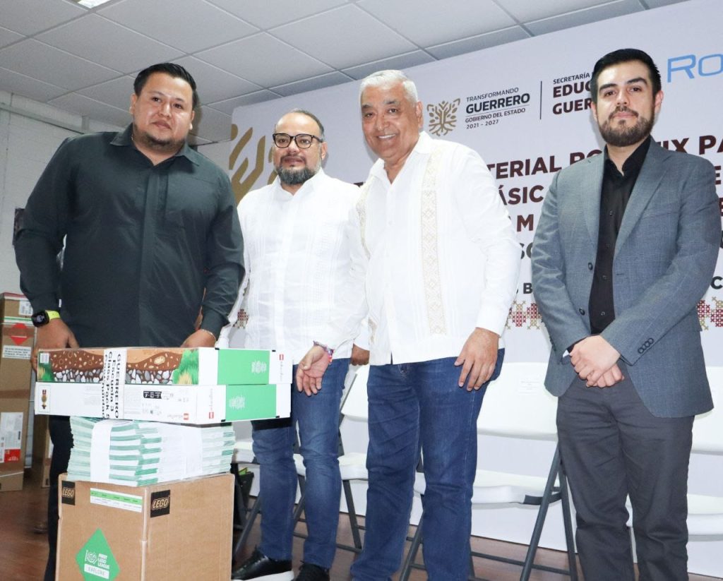 El secretario de Educación en Guerrero, Ricardo Castillo Peña, junto con el gestor de Proyectos de la Fundación RobotiX, Saúl Zamora, hicieron la entrega a docentes y alumnos de los centros educativos, quienes gradecieron este apoyo y el compromiso del gobierno estatal por procurar la educación de las y los guerrerenses que buscan forjarse un camino a través de las aulas.