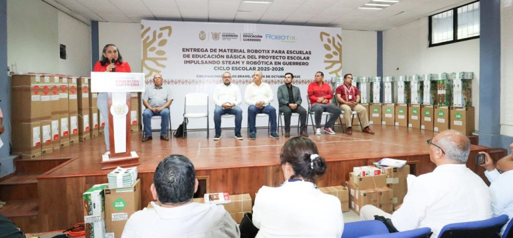 Chilpancingo, Gro., 17 de octubre de 2025.- Para continuar apoyando al sector escolar y educativo del estado, la administración que encabeza la gobernadora Evelyn Salgado Pineda, a través de la Secretaría de Educación Guerrero, junto al representante de la Fundación “RobotiX”, entregaron materiales y equipo de robótica a 27 escuelas de las regiones Costa Grande, Chica, Norte y Centro que beneficiará a 5 mil 643 estudiantes y 434 maestros, con lo cual se espera se cumplan diversas funciones escolares que vienen a beneficiar su preparación académica.