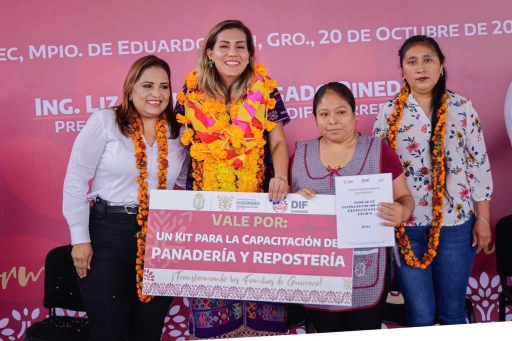 Huitziltepec, Gro., 21 de octubre de 2025. Esta mañana la presidenta municipal de Eduardo Neri, Q.B.P. Sara Salinas Bravo, acompañó a la Ing. Liz Salgado Pineda, presidenta honoraria del DIF estatal, en el arranque del programa “Capacitaciones para transformar”, iniciativa impulsada por el Gobierno del Estado, a través del Sistema DIF Guerrero, con el que se busca fortalecer el bienestar social y económico de las familias mediante la capacitación laboral y el autoempleo, y que dio inicio este día en el municipio Eduardo Neri.