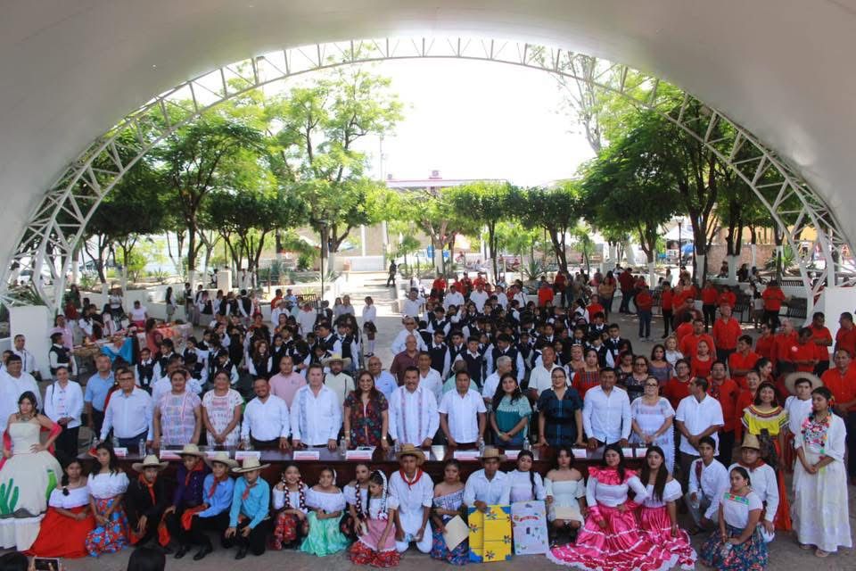 Evento que contó con la participación de alumnado de centros educativos del municipio, quienes engalanaron y llenaron de colorido la emotiva celebración a través de una exposición de trajes típicos y reseñas de cada una de las 8 regiones del estado, junto a la presentación del ballet folklóriko juvenil “Yohualli Tapayatzin”.