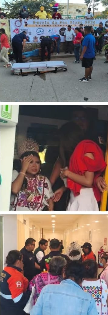 Tlapa de Comonfort Gro., 14 de noviembre del año 2025.-Cuando festejaban a un santo Patrono en la Ciudad de Tlapa, ocurrió un incidente que por poco cuesta la vida de personas adultas y niños, luego de que los poderosos cohetes que tiran la aire fueron alcanzados por el fuego y explotaron dejando a 8 personas heridas de gravedad.