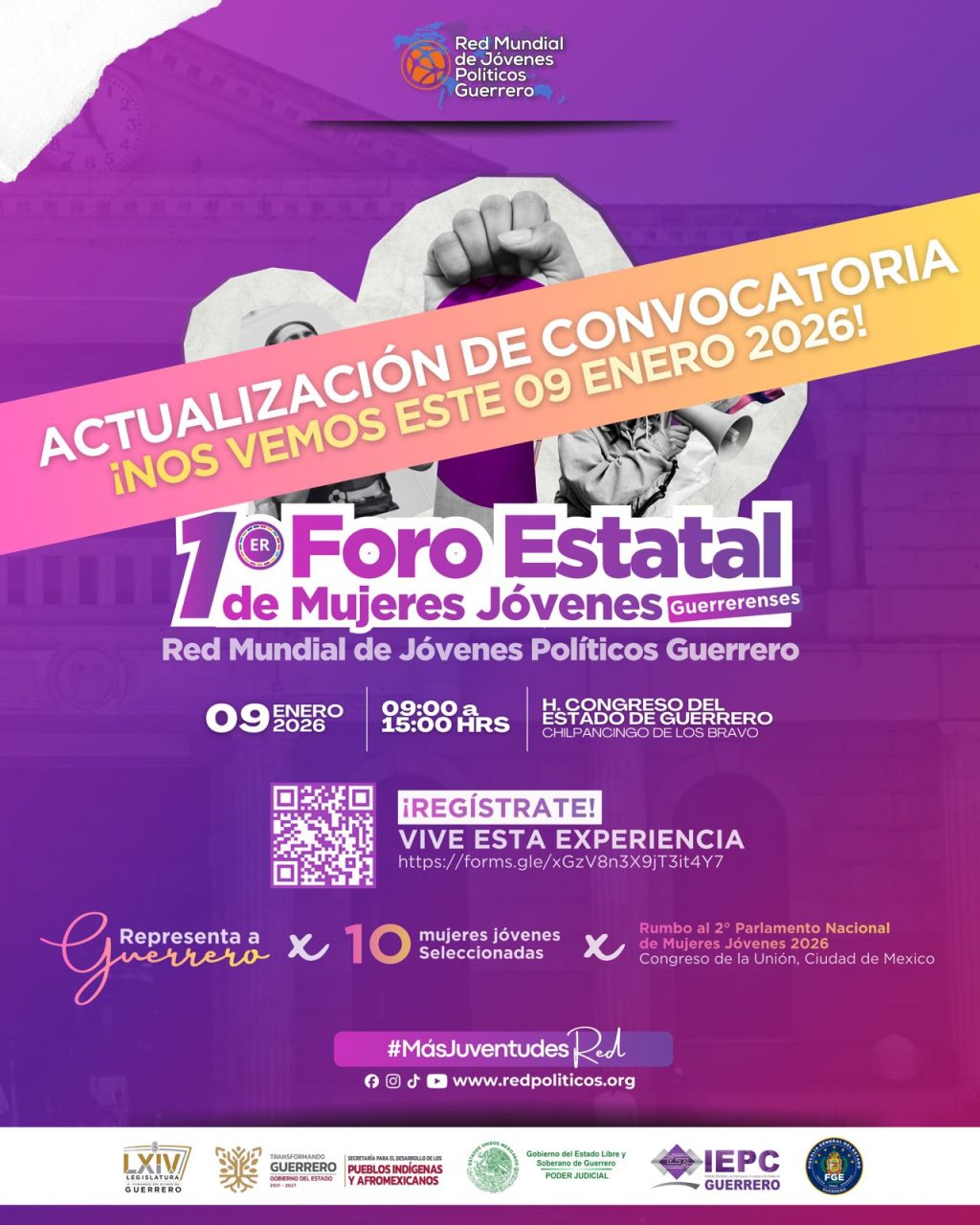 La Secretaría para el Desarrollo de los Pueblos Indígenas y Afromexicanos, en coordinación con la Red Mundial de Jóvenes Políticos Guerrero, lanzó la convocatoria para participar en el 1er Foro Estatal de Mujeres Jóvenes 2025, un espacio orientado a impulsar la participación femenina en la vida pública y legislativa del estado.