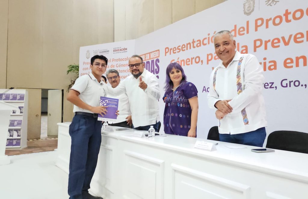Acapulco de Juárez, Gro., 06 de diciembre de 2025.– El secretario de Educación en Guerrero, Ricardo Castillo Peña, en representación de la gobernadora Evelyn Salgado Pineda, entregó oficialmente el “Protocolo con Perspectiva de Género para la Prevención y Atención de la Violencia en la Población Escolar de Educación Media Superior”.