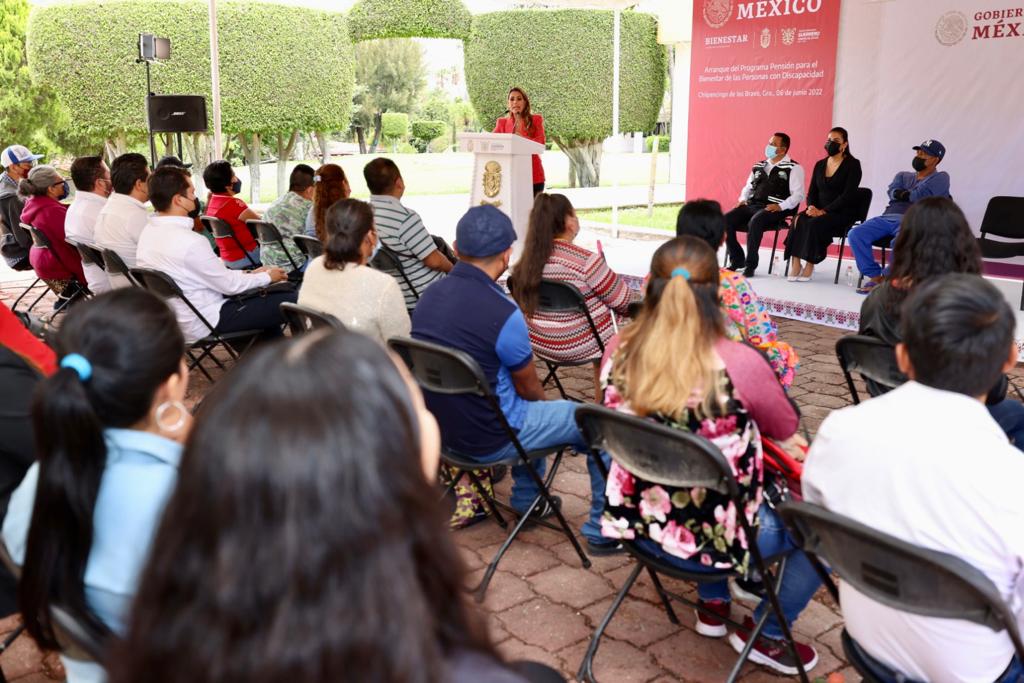 Chilpancingo, Gro., 07 de junio de 2022. – La gobernadora Evelyn Salgado Pineda, dio arranque en Guerrero al Programa de Pensión para el Bienestar de Personas con Discapacidad, que de manera histórica y sin precedentes se entregará de forma universal en la entidad, con una meta a incorporar este 2022 a 77 mil 169 beneficiarios, que representa una inversión directa para el Gobierno del Estado, superior a los 378 millones de pesos anuales, que se suma a la misma cantidad que aportará la federación.