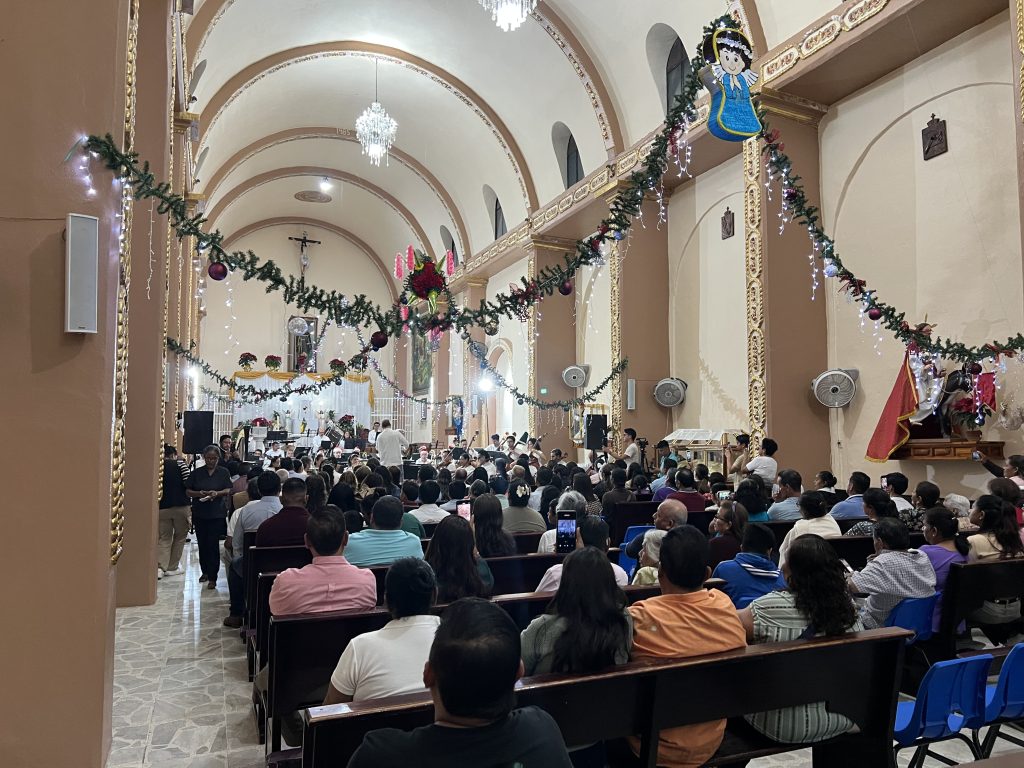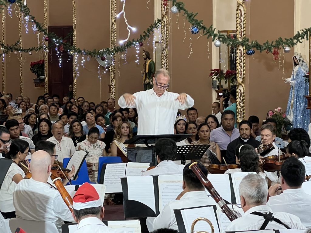 Apango, Gro.; 22 de diciembre de 2025.- Cumpliendo el deseo en estas festividades decembrinas, a los habitantes del municipio de Mártir de Cuilapan, en la región Centro de Guerrero, la Gobernadora Evelyn Salgado Pineda llevó a la localidad de Apango, el mensaje de amor y esperanza expresado a través de la música con un concierto especial de la Orquesta Filarmónica de Acapulco dirigido por el Maestro Bartholomeus Henri Van de Velde que fue realizado la noche del sábado en la Parroquia de San Francisco de Asís.