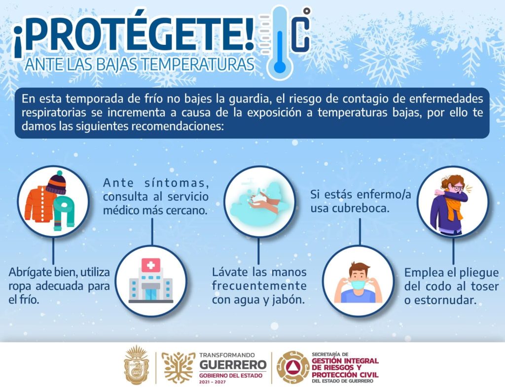 En línea con la política preventiva impulsada por la gobernadora Evelyn Salgado Pineda, la dependencia recomendó abrigarse adecuadamente, beber suficiente agua, evitar cambios bruscos de temperatura, vacunarse contra enfermedades respiratorias y brindar especial atención a niñas, niños, personas adultas mayores y con padecimientos crónicos.