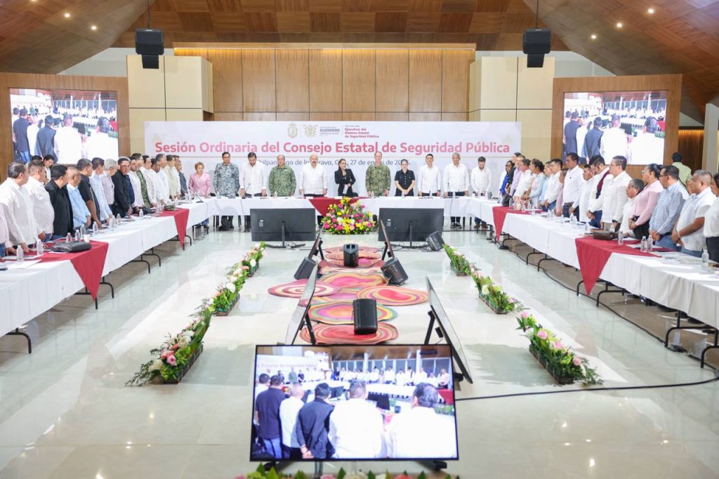 Chilpancingo, Gro., 28 de enero de 2026.- La gobernadora Evelyn Salgado Pineda encabezó la sesión ordinaria del Consejo Estatal de Seguridad Pública, donde llamó a las y los alcaldes de Guerrero a hacer de la seguridad una prioridad en sus municipios, cumplir con los programas alineados a la estrategia nacional y aplicar de manera responsable los recursos, refrendando el compromiso institucional con la pacificación del estado.