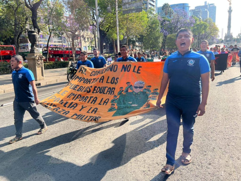 Un normalista que participó como orador indicó que del caso Iguala, van tres presidentes de México; Enrique Peña Nieto, Andrés Manuel López Obrador y Claudia Sheinbaum así como tres gobernadores; Rogelio Ortega, Héctor Astudillo Flores y Evelyn Salgado Pineda y nadie ha sido capaz de dar solución y saber el paradero de los 43 normalistas.