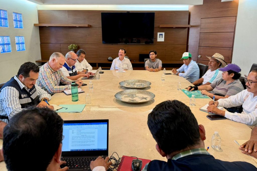Acapulco, Gro., 11 de abril de 2026.— Como parte de la atención a las necesidades de los Bienes Comunales de Cacahuatepec, el subsecretario de Desarrollo Político y Social, Francisco Rodríguez Cisneros, participó en una reunión de trabajo junto con el director local en Guerrero de la Comisión Nacional del Agua (Conagua), Eric Ehecatl Cisneros Chávez, y el director general de la CAPASEG, Facundo Gastélum Félix, con autoridades y representantes locales.