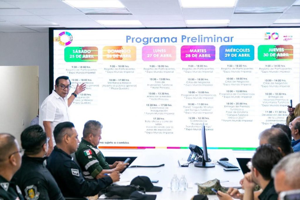 Acapulco, Gro., 25 de abril de 2026.- El secretario de Turismo, Simón Quiñones Orozco, encabezó la tercera reunión del Subcomité de Seguridad del Tianguis Turístico México 2026, que tendrá como sede el puerto de Acapulco, con el objetivo de dar seguimiento puntual a la estrategia integral que se implementará durante este importante encuentro.