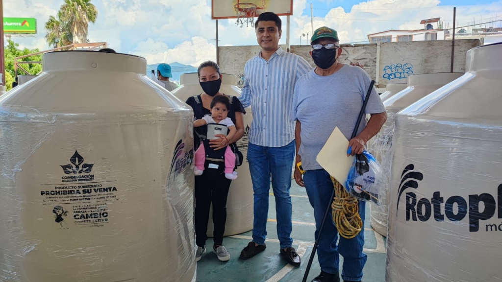 Por instrucciones de la presidenta Municipal, Norma Otilia Hernández Martínez y como parte del programa “Progreso y Bienestar”, la Secretaría de Desarrollo y Bienestar Social a través de la subsecretaría de Desarrollo y Bienestar Social, en coordinación con la Congregación Mariana Trinitaria, entregaron tinacos, cisternas y purificadores de agua a precio subsidiado, en las instalaciones de la Unidad Deportiva “Hermanos Galeana”, los cuales beneficiarán a las diferentes familias del municipio.
