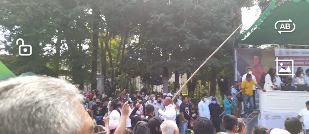 El acto inició alrededor de las 10 de la mañana, los contingentes salieron del barrio del Santuario y concluían su recorrido pasando la mesa del presidium, que se ubicó afuera de la iglesia de San Martín, en el centro de la ciudad.