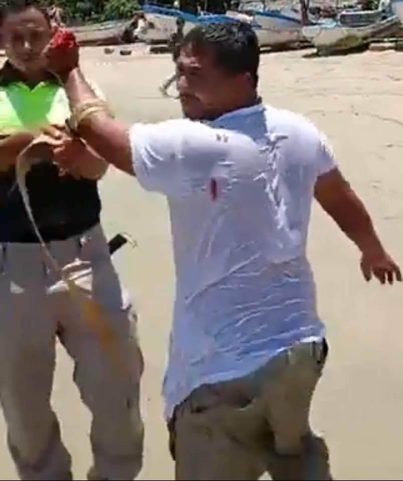 un cocodrilo fue capturado, otros dieron lata, pues mordieron a un trabajador de bomberos y a otro de Protección Civil Estatal, salieron muy bravos esos cocodrilos.Un trabajador de protección civil muestra las heridas provocadas por el cocodrilo.