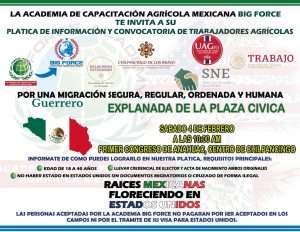 la Academia de Capacitación Agrícola Mexicana BIG FORCE invitan a la población del municipio y comunidades a la platica informativa. Sin categoría la Academia de Capacitación Agrícola Mexicana BIG FORCE invitan a la población del municipio y comunidades a la platica informativa. DANIEL GENCHI PALMA 3 febrero, 2023 El H. Ayuntamiento Municipal que preside la Lic. Norma Otilia Hernández Martínez, a través de la Secretaría...Leer Más..