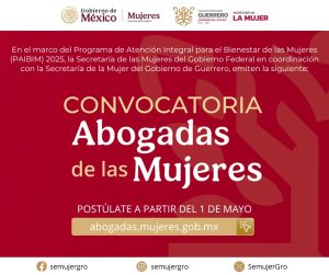 Guerrero contará con Abogadas de las Mujeres para brindar asesoría legal integral y gratuita a las guerrerenses Sin categoría Guerrero contará con Abogadas de las Mujeres para brindar asesoría legal integral y gratuita a las guerrerenses DANIEL GENCHI PALMA 1 mayo, 2025 *Gobierno de Guerrero convoca a especialistas a participar como “Abogadas de las mujeres”, quienes se podrán postular...Leer Más..