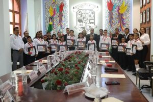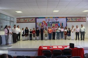 Siendo nombrada como alcaldesa infantil Ana Brigith Rafael Martínez, síndico procurador, Iker Santiago Girón Bello, secretaria general,...