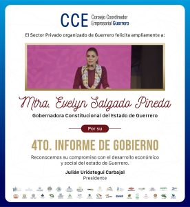 El Consejo Coordinador Empresarial reconoce a Evelyn Salgado por su compromiso con el desarrollo económico y social del estado Noticias El Consejo Coordinador Empresarial reconoce a Evelyn Salgado por su compromiso con el desarrollo económico y social del estado DANIEL GENCHI PALMA 10 septiembre, 2025 Acapulco, Gro., a 10 de septiembre de 2025.- El Consejo Coordinador Empresarial del Estado de Guerrero, (CCEGRO),...Leer Más..