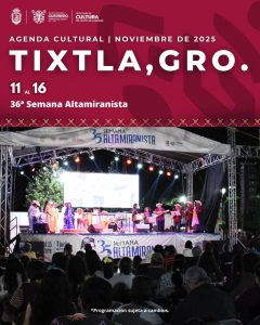 Noviembre cultural en Guerrero: Conciertos, exposiciones y tradiciones en todos los municipios Social Noviembre cultural en Guerrero: Conciertos, exposiciones y tradiciones en todos los municipios DANIEL GENCHI PALMA 8 noviembre, 2025 La Secretaría de Cultura, invita a la población a disfrutar de una amplia y diversa agenda cultural...Leer Más..