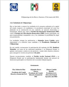 Guerra en la pelea por la candidatura a la Presidencia de Chilpancingo; PRI, PRD y PAN aseguran que el ganador es Alejandro Arcos y Bonifacio desconoce los resultados. Evivo Guerra en la pelea por la candidatura a la Presidencia de Chilpancingo; PRI, PRD y PAN aseguran que el ganador es Alejandro Arcos y Bonifacio desconoce los resultados. DANIEL GENCHI PALMA 1 abril, 2024 Los hechos se dan luego de que el el viernes santo, los tres dirigentes de los...Leer Más..